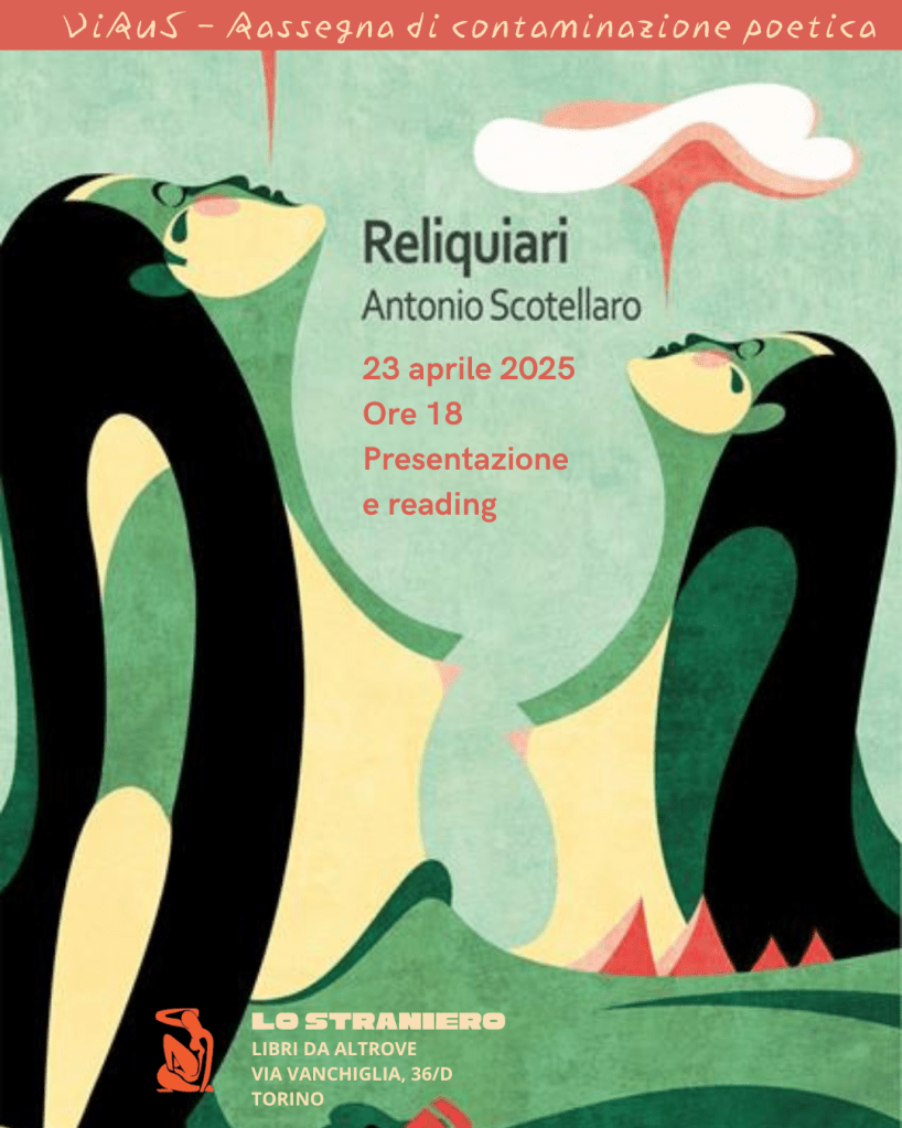 Antonio Scotellaro (Novara, 1972) ha studiato al DAMS di Bologna. Art director, interior designer, curatore di mostre d’arte contemporanea, organizza masterclass, workshop e progetti culturali didattici anche per l’infanzia, grandi eventi, festival, esposizioni in musei, gallerie in Italia e all’estero. Giovanissimo esordisce come musicista, dedicandosi alla poesia e pubblicando a 16 anni “Il giardino appassito”. Seguiranno “Tragitti in sosta”, 1990, “Bassorilievi sentimentali” 1994, “Aerobica genetica” 1995, “Effimera Prosodia dei viventi”, 1996, “Breviario Semantico”, 2003. Ritorna alla poesia con “La comunione dei beni”, 2020, cui succedono “Il bugiardino delle relazioni sentimentali”, 2023, e “Reliquiari”, 2025.