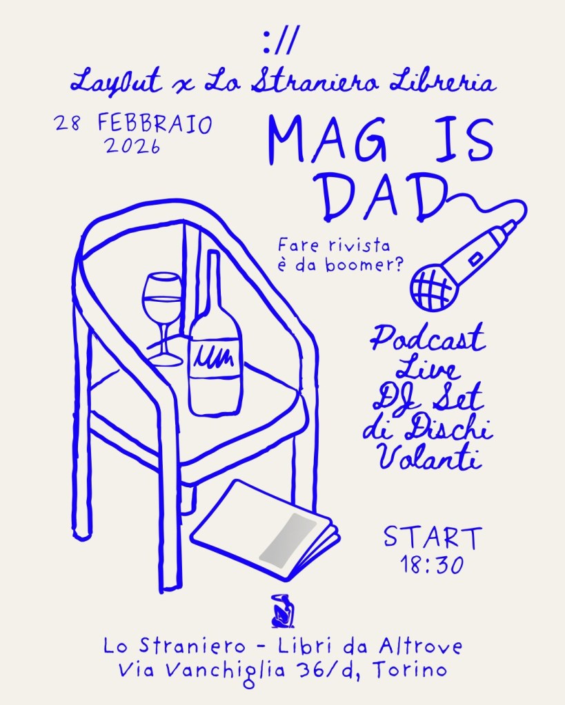 Il 28 Febbraio 2026 incontreremo la redazione di Lay0ut, con Demetrio Marra, programmatore editoriale, Dimitri Milleri e Matteo Cristiano, redattori del magazine.